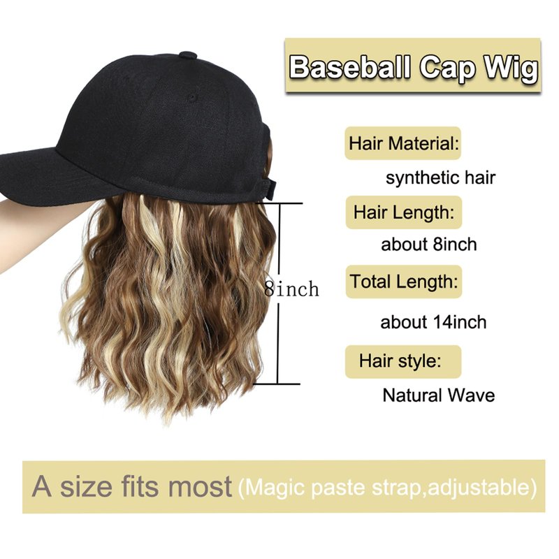 AliRobam Hat with Natural Wave hair Extensions attached for woman Baseball cap wig Short Bob Hairstyle Adjustable Wig (Mbrown blonde)