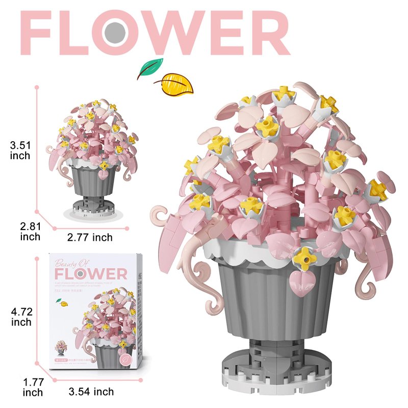 Flower building sets made of hight-quanlity Eco-friendly ABS plastic, and the surface of the blocks feels smooth. building sets is Precision casting processing molding, processed through multiple processes to ensure that it is built securely, will not deform, and will not fade.