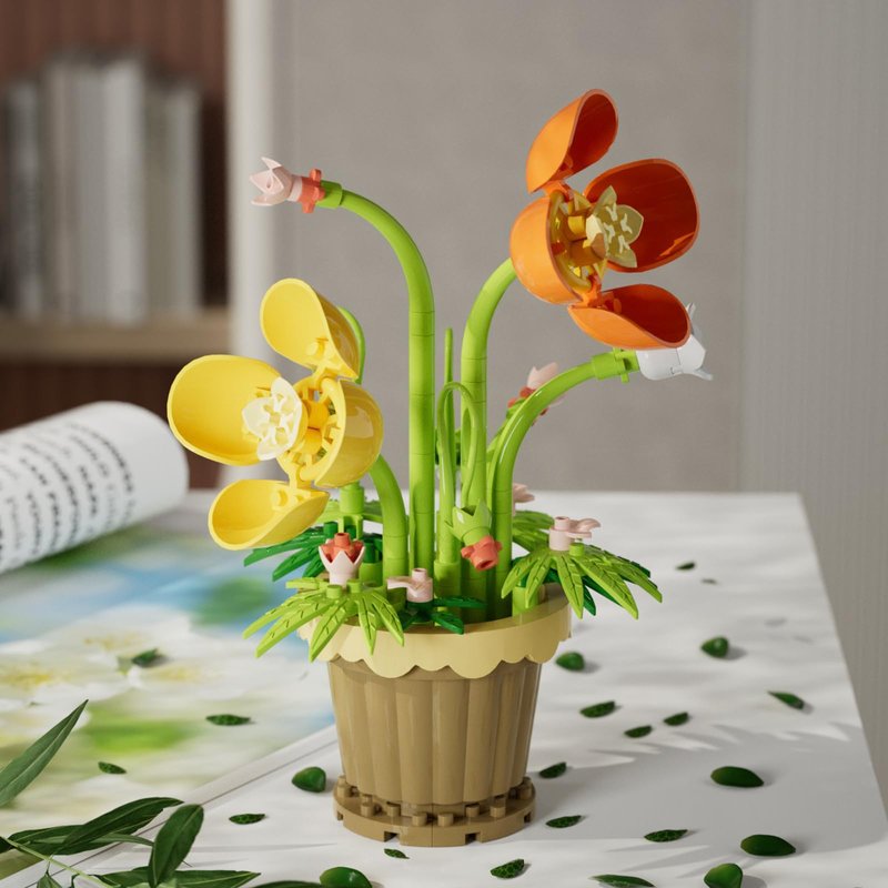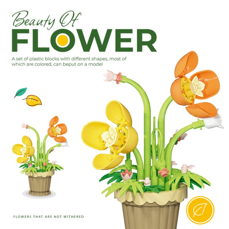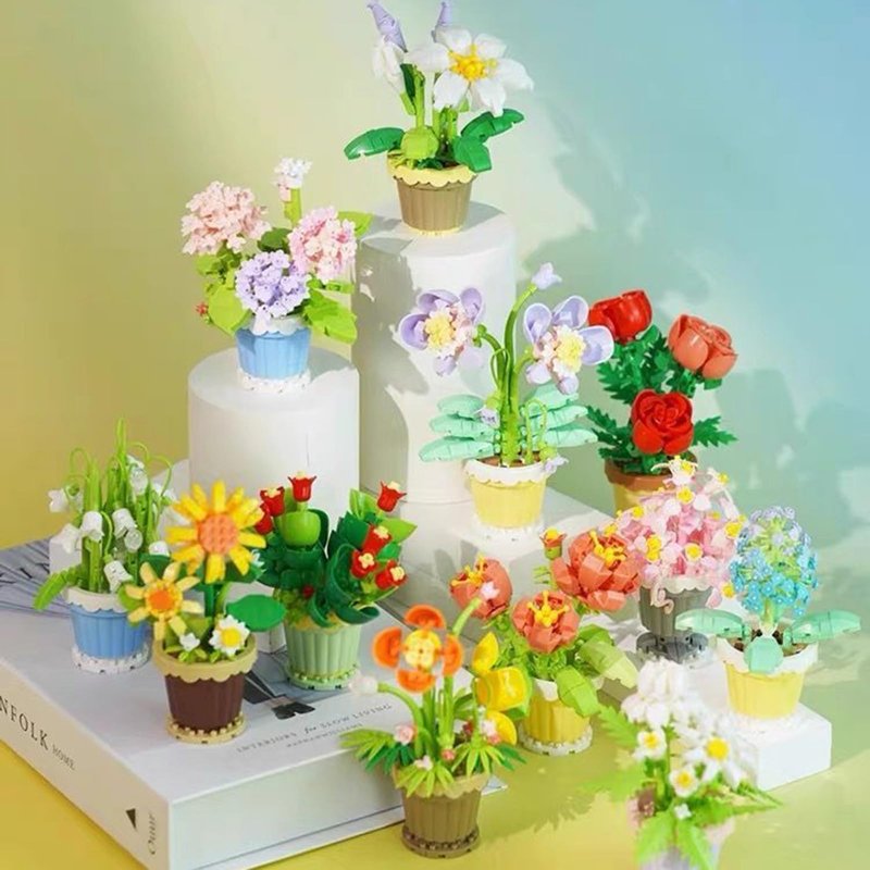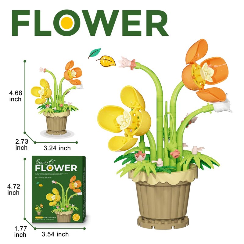 Flower building sets made of hight-quanlity Eco-friendly ABS plastic, and the surface of the blocks feels smooth. building sets is Precision casting processing molding, processed through multiple processes to ensure that it is built securely, will not deform, and will not fade.