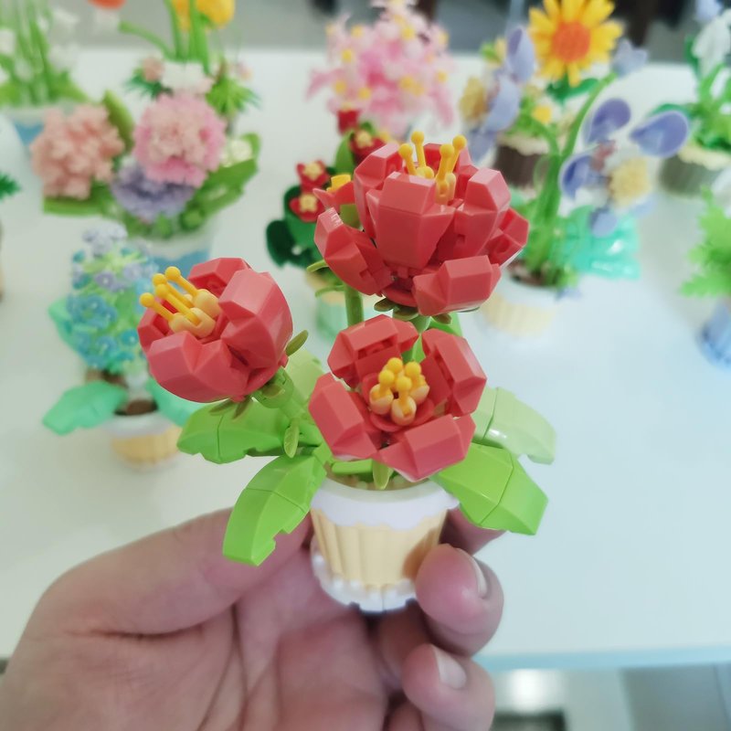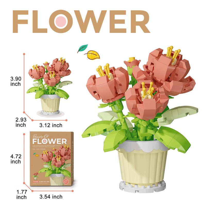 Flower building sets made of hight-quanlity Eco-friendly ABS plastic, and the surface of the blocks feels smooth. building sets is Precision casting processing molding, processed through multiple processes to ensure that it is built securely, will not deform, and will not fade.