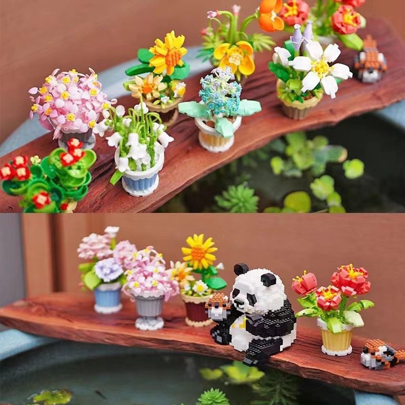 The flower building blocks are novel in design, full of creativity and imagination. each brick has a unique shape and color and can be combined into a variety of flowers and plants.
