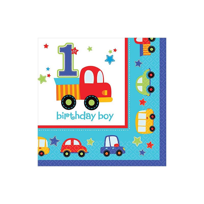All Aboard! Birthday Party Beverage Napkins Tableware, Multi Colored, Paper, 5" x 5" (Folded), 18-Piece