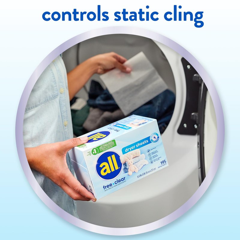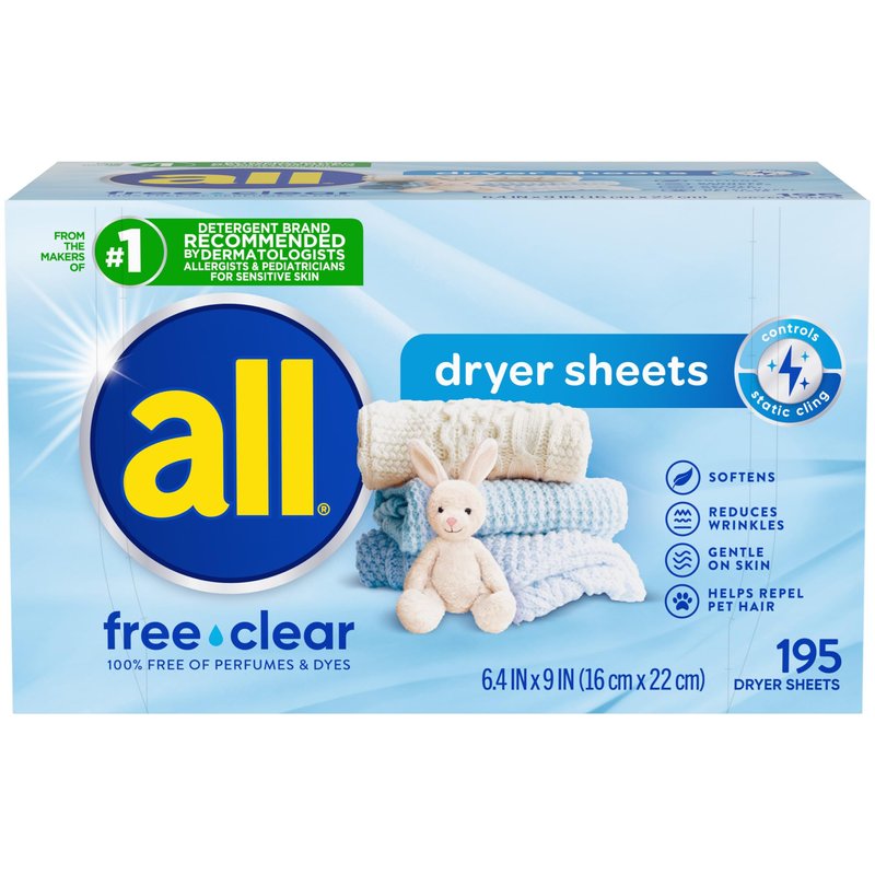 all Fabric Softener Dryer Sheets for Sensitive Skin, Free Clear, 195 Count