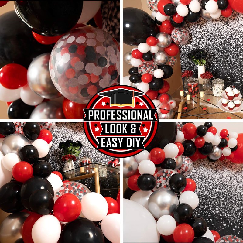 ALL-IN-1 Red Black and White Balloon Arch Kit for Red and Black Birthday Party Decorations – Red and Black Balloons for White Black and Red Balloon Garland Kit – Graduation Black and Red Balloons