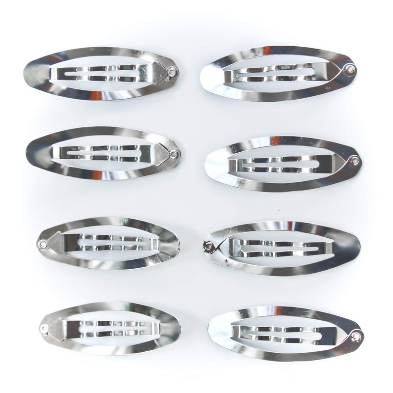 ALL in ONE 50pcs Metal Silver Oval Shape Snap Hair Clips/Barrettes for DIY 50mm