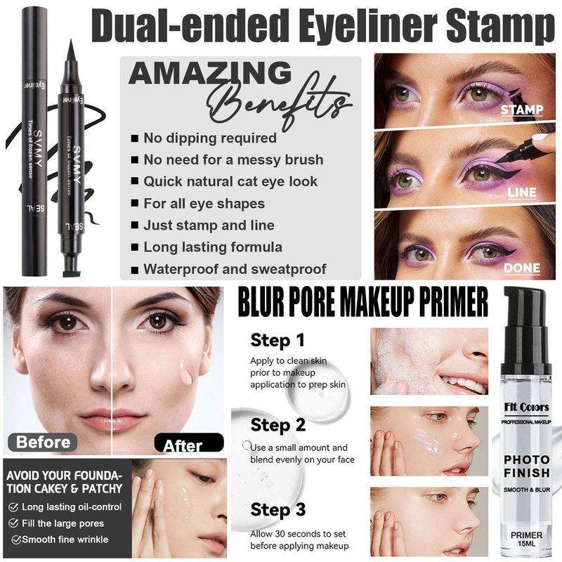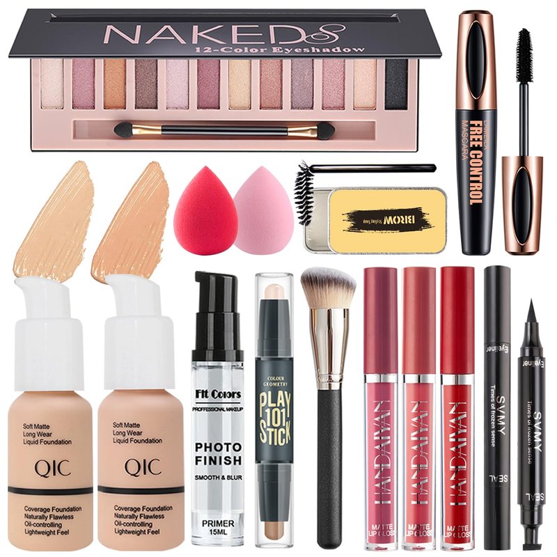 - DESIGNED FOR THE BOLD AND BEAUTIFUL - Package includes:12 Colors Shimmer Eyeshadow, Nude & Beige Foundation, Face Primer, 3Pcs Liquid Lipsticks, Contour Stick, Eyebrow Soap, Winged Eyeliner Stamp, Mascara, Makeup Brush, 2Pcs Makeup Sponge