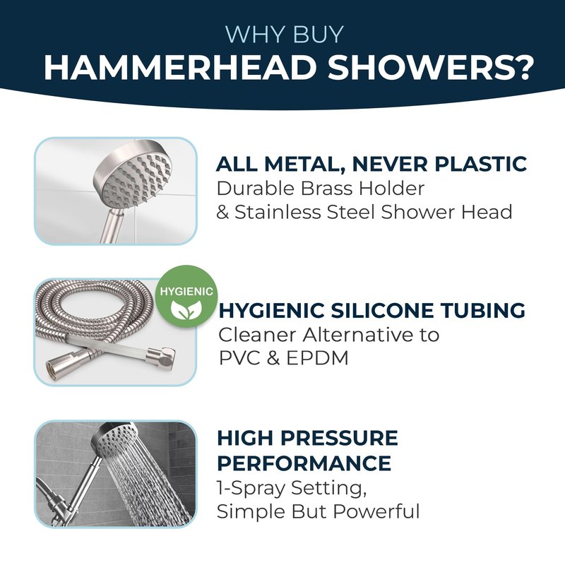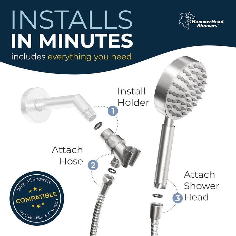 ALL METAL Handheld Shower Head with Hose and Brass Holder- BRUSHED NICKEL - 2.5 GPM High Pressure - with Adjustable Wand Bracket - 6ft Flexible Extension