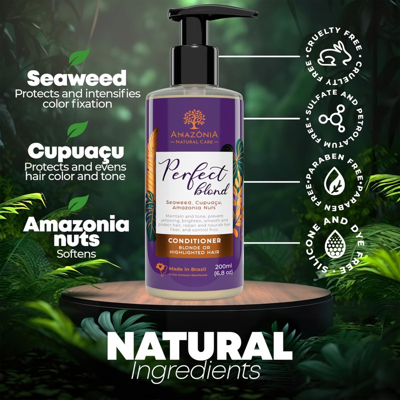 All Natural Blonde Conditioner - Blonde Color-treated Hair Toner for Highlighted Hair - Toner for Blonde Hair After Bleach Conditioner with Seaweed, Cupuacu & Amazonia Nuts 6.8oz