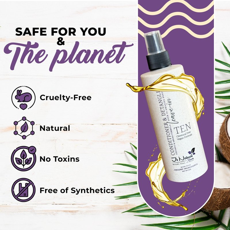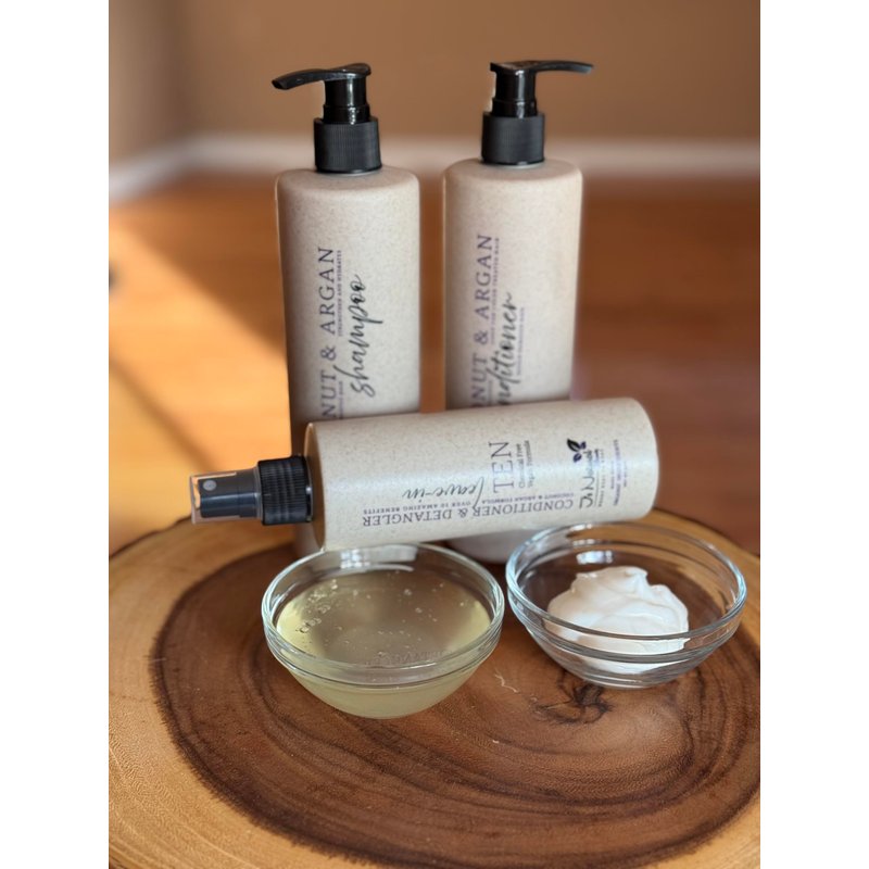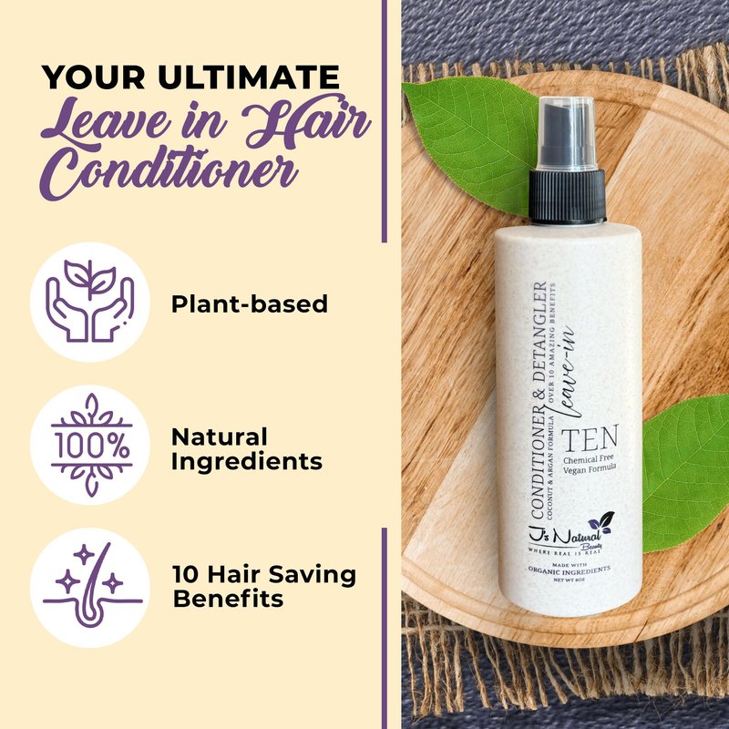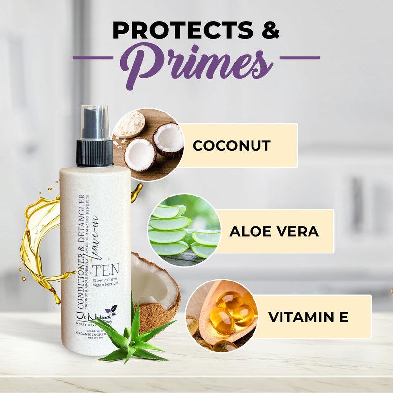 All- Natural TEN Coconut and Argan Infusion Multi-Benefit Leave in Conditioner and Detangler for All Hair Types and Needs (wheat straw biodegradable, Large)