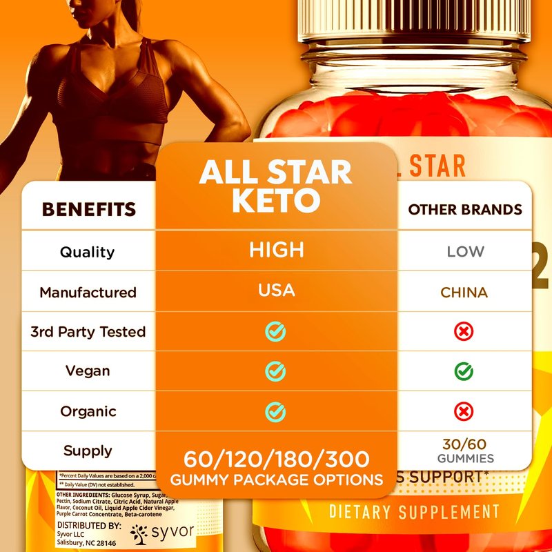 - All Star ACV Gummies: Max Strength Ingredients, packed with a powerful blend of all-natural vitamins and extracts.