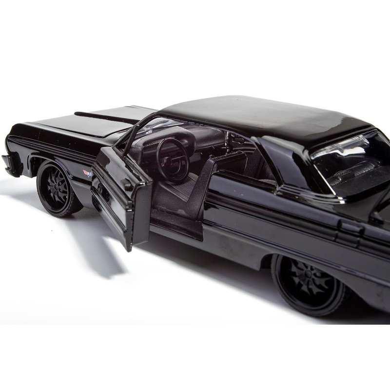 All Star Toys 1964 Chevy Impala Black with Custom Deep Dish Wheels 1/24 Diecast Model Blacked Out Lowrider Motormax Exclusive 73259