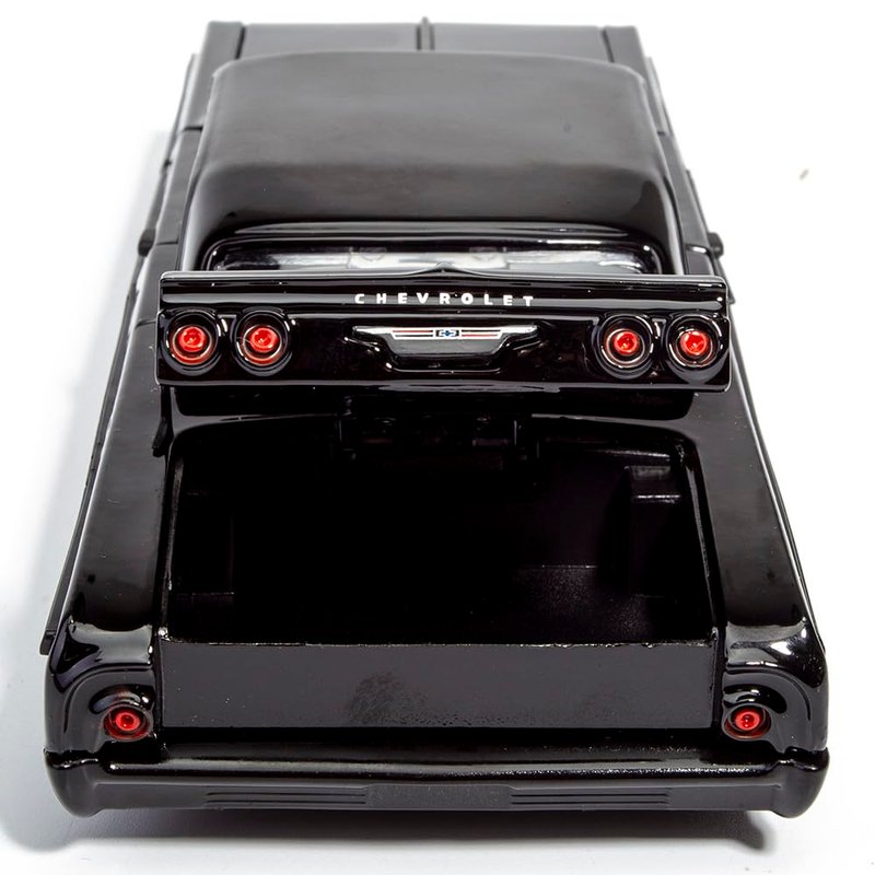 This is a miniature replica of the real-life 1964 Impala that has been modified with lowrider style elements, giving it a distinctive look. Exclusively brought to you by All Star Toys. This model car is made of high quality die-cast with added lowrider features such as a lowered chassis, custom wheels, and unique paint job. This blacked out classic features openable doors, hood & trunk, along with a set of deep dish wheels. This Impala is a true collector's item for car enthusiasts. Shipped in a corrugated box to ensure you'll receive the car in a prestige condition.