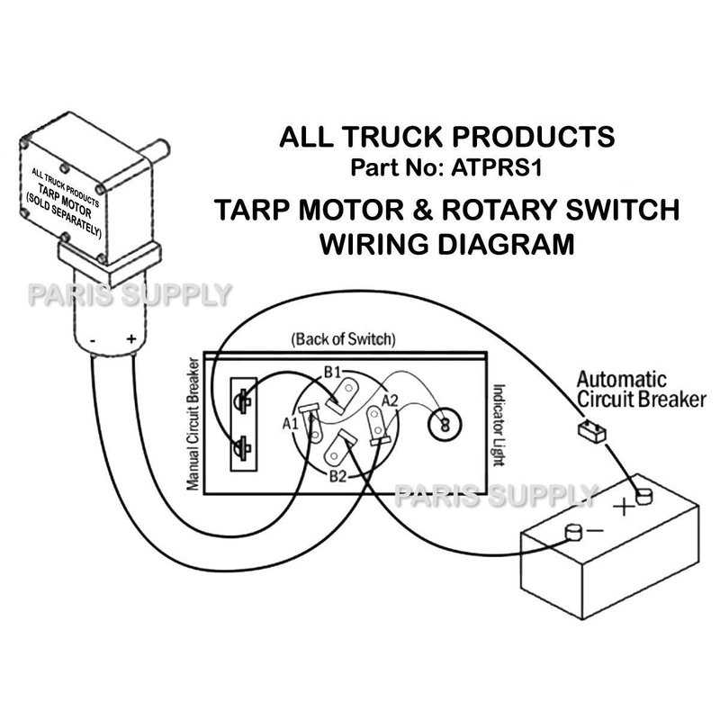 ALL TRUCK PRODUCTS TARP Motor Rotary Switch KIT w/Circuit Breaker and Indicator Light 12VDC 50 Amps