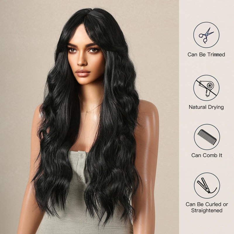 - 【Premium Material】:The Black wavy wig is made of high-temperature resistant synthetic fiber and stands heat up to 120℃ (250℉). It is not only heat-resistant and durable, but also looks very natural and realistic. Easy to comb and not easily tangle and hair loss.