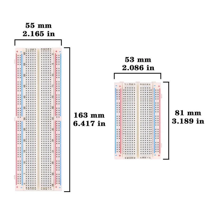 830 Points breadboard's size: 16.3 x 5.5 x 1 cm / 6.41 x 2.16 x 0.39 inch