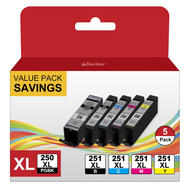 Alledar 251 Printer Ink Cartridges for Canon 250 and 251 Ink Cartridges PGI-250XL CLI-251XL to Use with Pixma IX6820 MX920 MX922 IP8720 MG5520 MG7520 MG7120 (PGBK Black Cyan Magenta Yellow, 5 Pack)