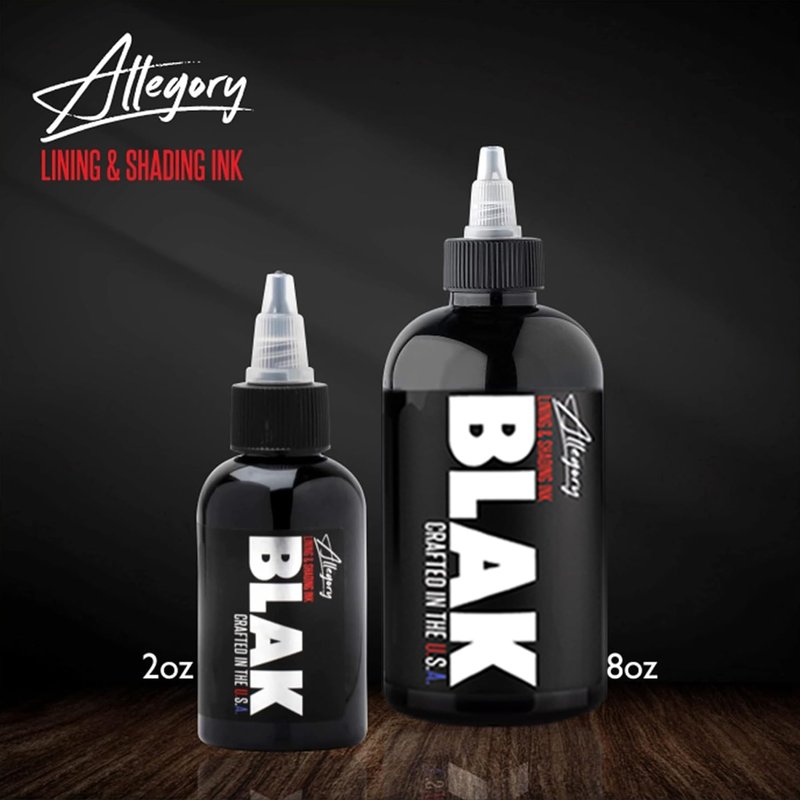 - Premium Tattoo Black Ink – Allegory BLAK is a smooth, consistent blend of liquid dispersed pigment. Many of the most popular tattoo artists around the globe uses Allegory BLAK Ink for precise lining and shading. Allegory BLAK is the stepping-stone to the future of tattooing.