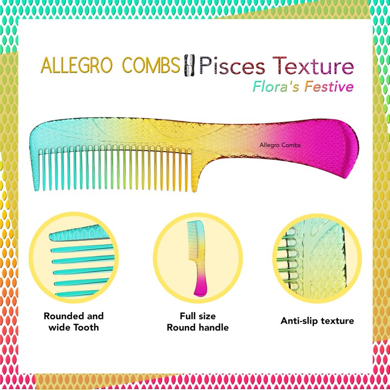 Allegro Comb 1004 Wide Tooth Detangling Hair Combs For Women, Stylists & Curly Hair Teasing Comb Mens Comb 1 Piece. (Flora's Festive)