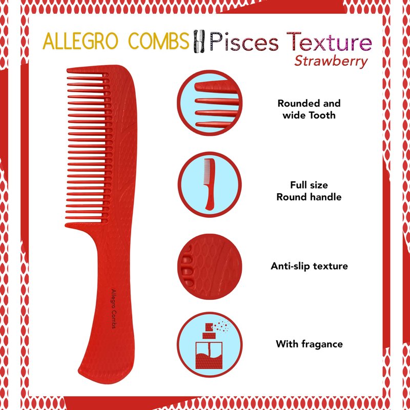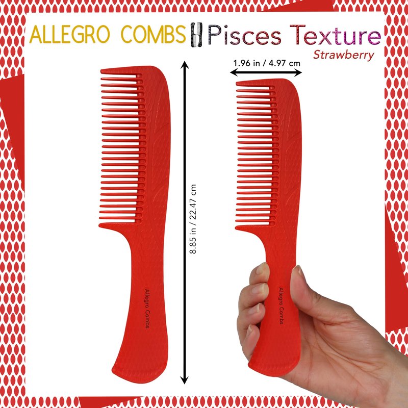 Allegro Comb 1004 Wide Tooth Detangling Hair Combs For Women, Stylists & Curly Hair Teasing Comb Mens Comb 1 Piece. (Strawberry)