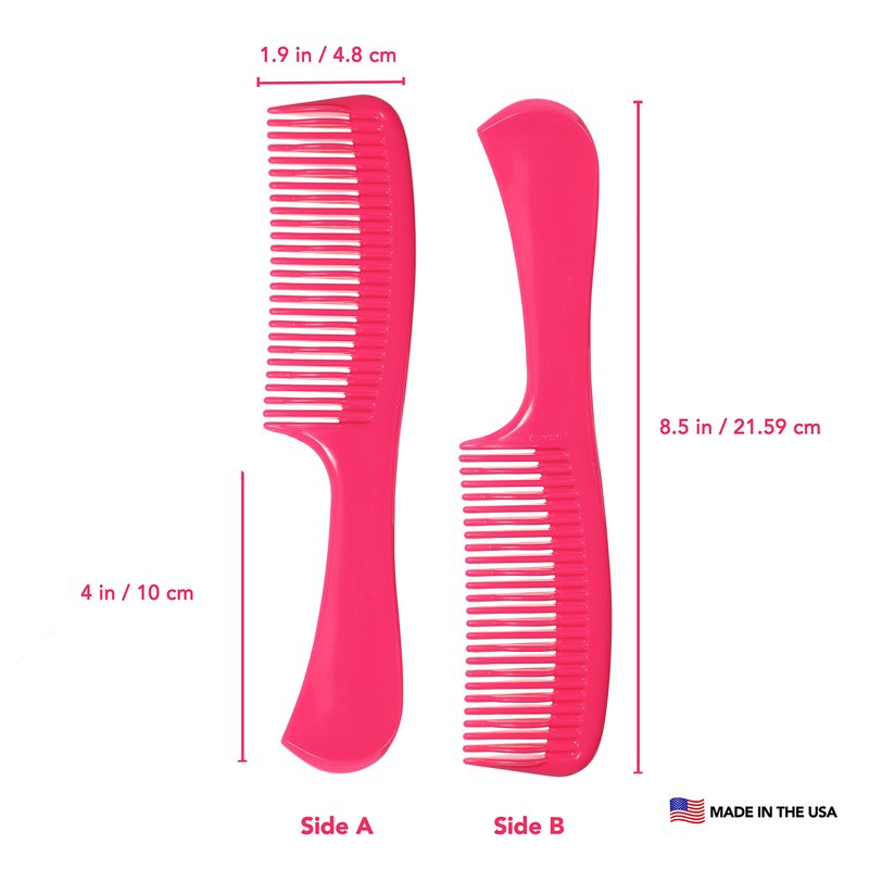 - Made in the USA for multiple applications: Allegro Combs #1003 tangle tamer with handle great wide tooth comb for curly hair for wet or dry hair, thick hair, curly hair, children's hair. The detangle combs with standout colors works great for all hair types, handle for better gripping nicely in shower curly hair detangler.