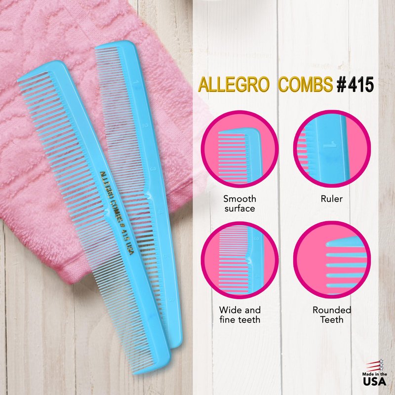 Allegro Combs #415 Combs for Women, 7 Inches Combs for Men, Parting Comb, Hair Comb, Comb for Men 6 Count (Baby Blue)