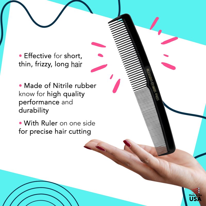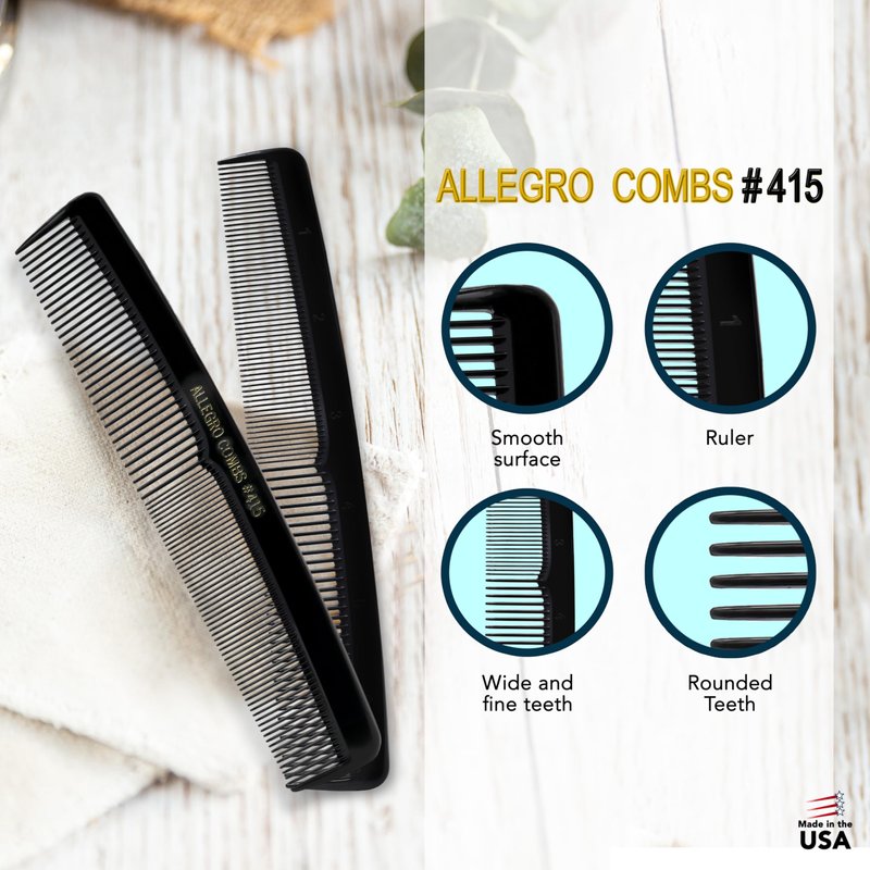 Allegro Combs #415 Combs for Women, 7 Inches Combs for Men, Parting Comb, Hair Comb, Comb for Men 6 Count (Black)