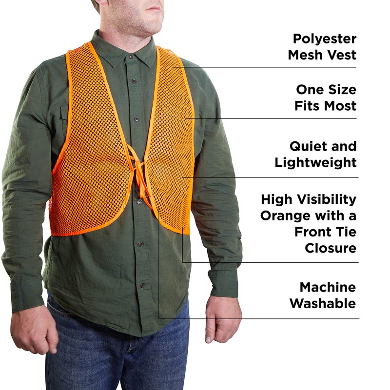 Allen Company Adult Blaze Orange Mesh Hunting Vest with a Front-Tie Closure - High-Visibility Saftey Gear for Men and Women - Fits over Clothes and Jacket - One size