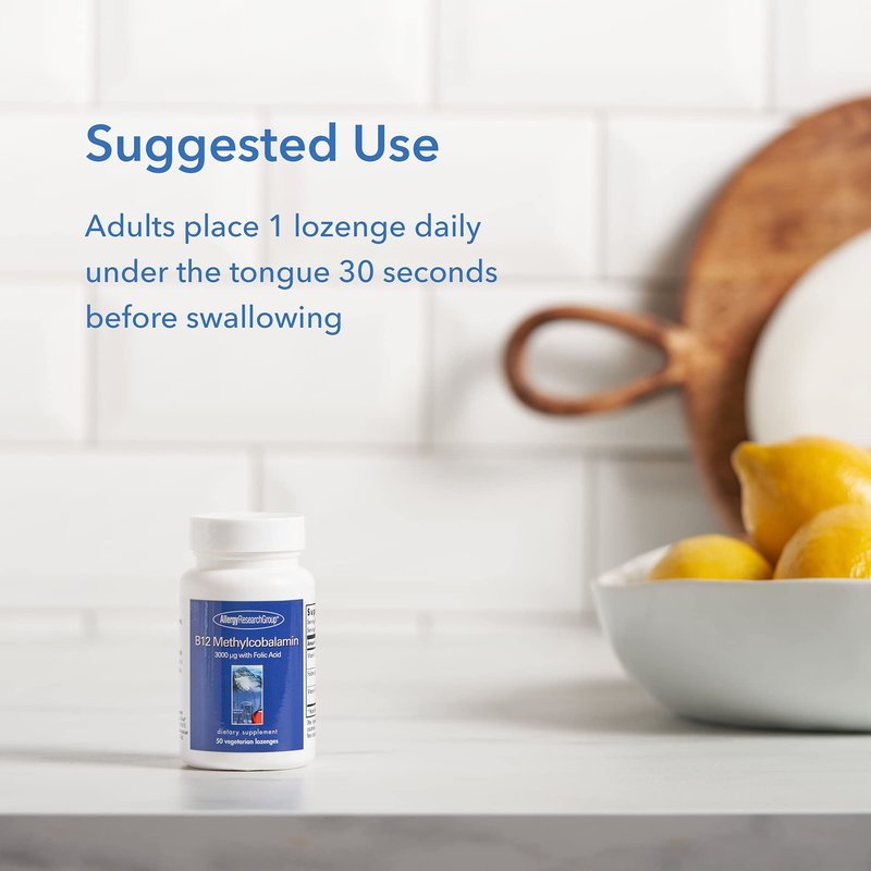 Allergy Research Group B12 Methylcobalamin Supplement - Vitamin B12 and Folate, with 400mcg Folic Acid, Pure, Vegetarian Lozenges - 50 Count
