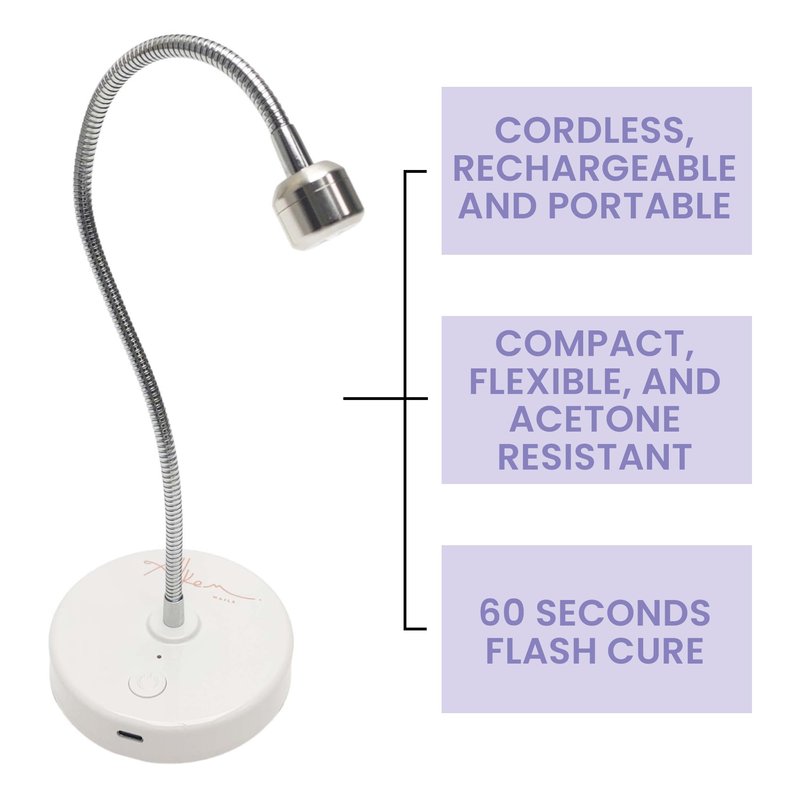 - CORDLESS AND PORTABLE: The battery life lasts for a long time. UV LED Desk light with a flexible gooseneck with an acetone-resistant base meaning you don’t have to worry about nail polish spilling on the lamp.
