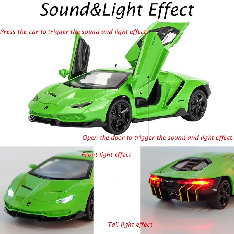 Alloy Collectible Green Lambo Toy Cars Model Pull Back Vehicles Diecast with Light & Sound