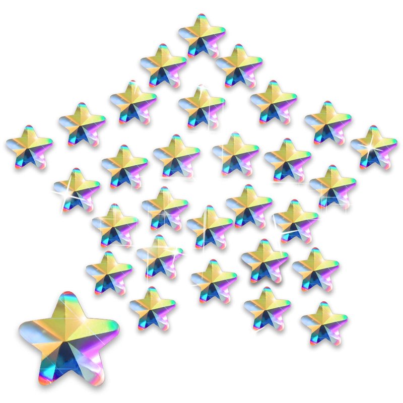 Allstarry 100pcs Flatback Rhinestones Irridescent Star-shaped Face Gems Eye Gemstones Nail Charms for Crafts AB Glass Crystals for Jewelry Making, Eye Makeup- 5mm