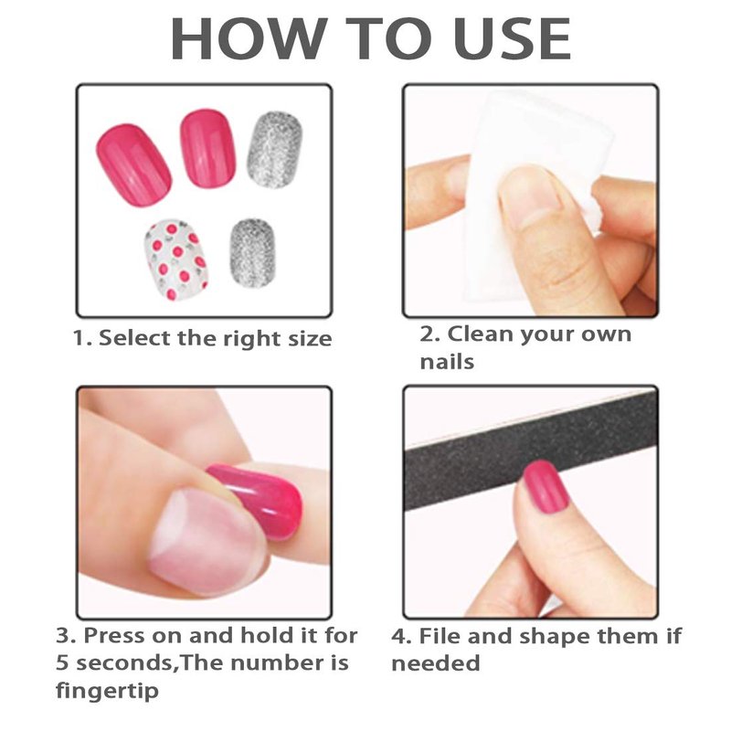 - ♦Simple Operation: Allstarry artificial press on nails are easy to manicure, such as trim, file, and paint. Pre-glue design makes children or their parents easy to apply. Without apply gel or nail polish, kids can get wonderful nails.