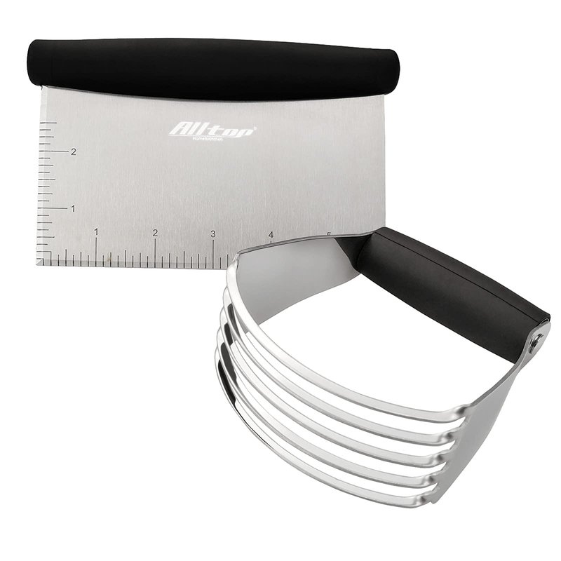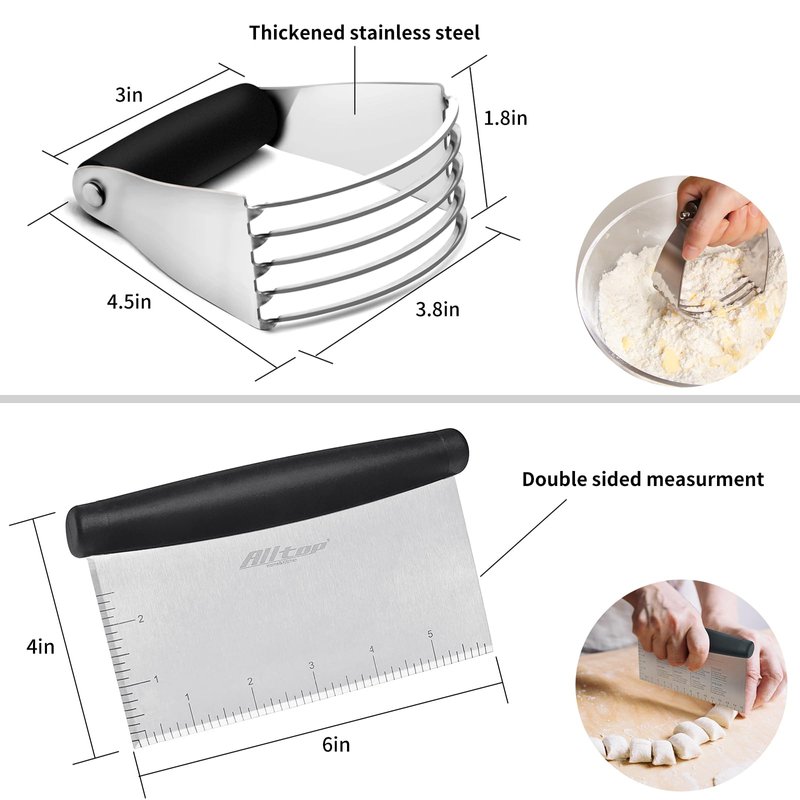 ALLTOP Stainless Steel Pastry Blender Cutter and Bench Scraper Set, Efficient Multipurpose Kitchen Baking Essential Tool with Comfortable Grip Handle-Perfect for Nut, Pie and Dough Processing - Black