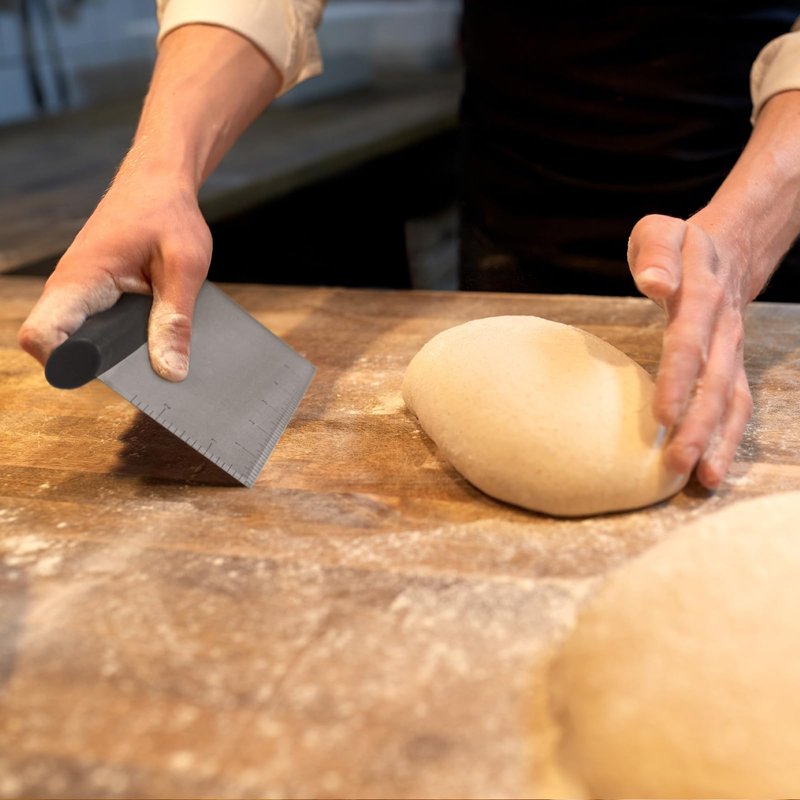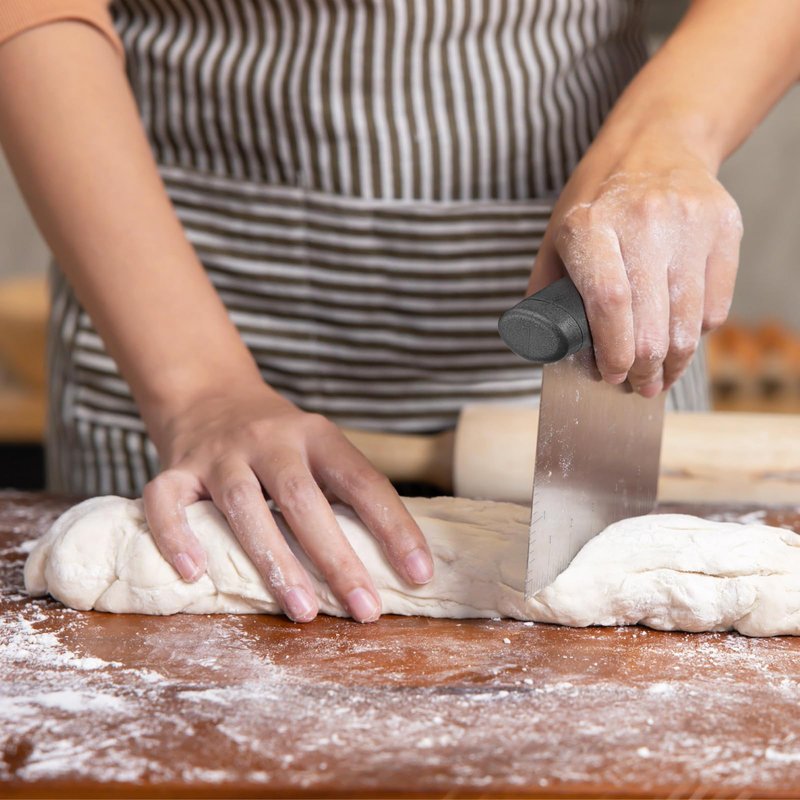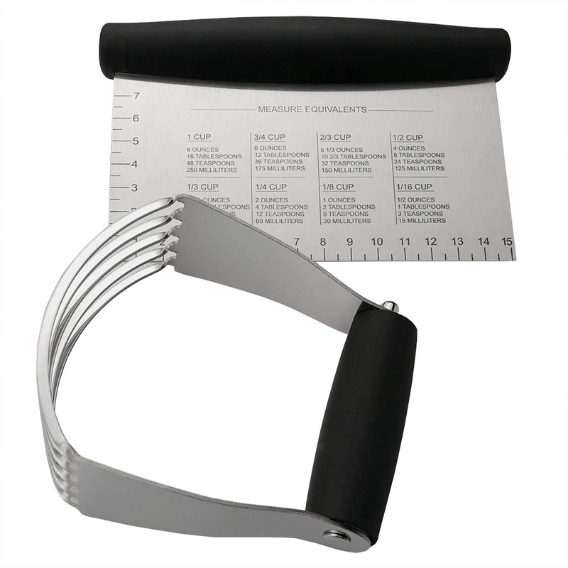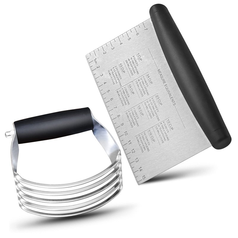 - 2-in-1 Innovation - Our set includes both a dough blender and bench scraper for improved baking performance. Expertly blend ingredients with the dough blender, and use the bench scraper to measure, cut, and even transfer dough. Achieve delicious results with minimal dough handling.