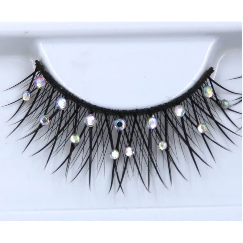 Alluring Synthetic Mink Lashes Reusable Strip False Eyelashes Cat-Eye, Fun Colored 3D Look Lashes, 2 Layers (Rhinestones (8))