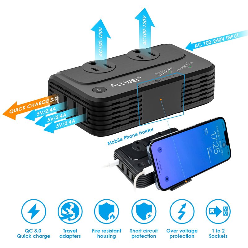 ALLWEI power converter with the built-in protection,Surge protection, short circuit protection and more advanced safety features keep you and your devices safe.
