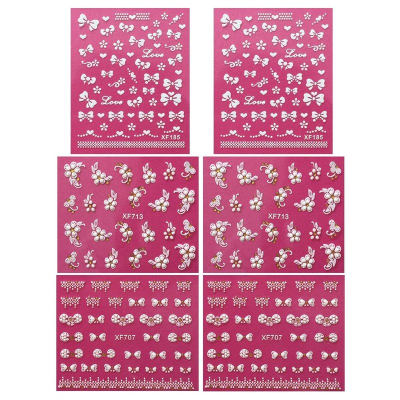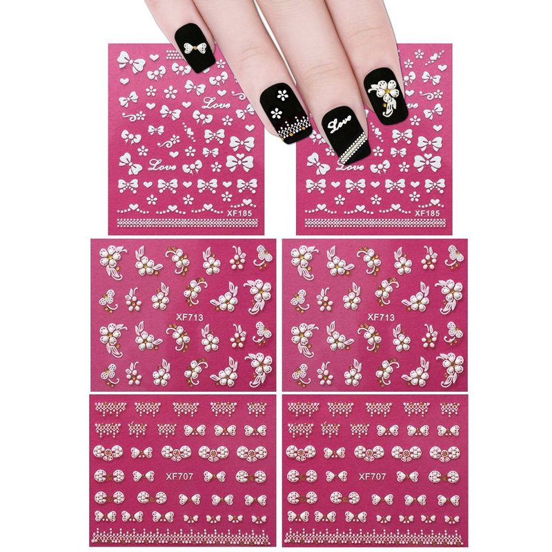 ALLYDREW Fingernail Stickers Nail Art Nail Stickers Self-Adhesive Nail Stickers 3D Nail Decals - Bows, Hearts & Flowers (3 Designs/6 Sheets)