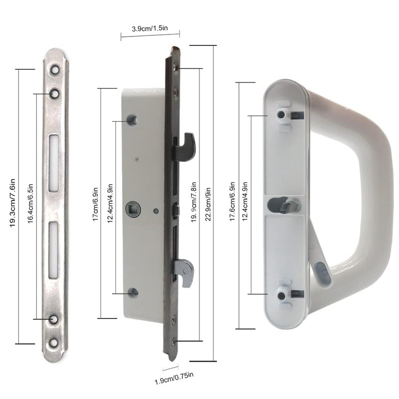 ALLYWASAI Sliding Patio Door Handle Set with Mortise Lock, Suitable for Sliding Glass Patio Door Thickness from 0.9in to 1.4in, 4-15/16" Screw Holes, Need to Drill, Reversible Design, Keyed, White