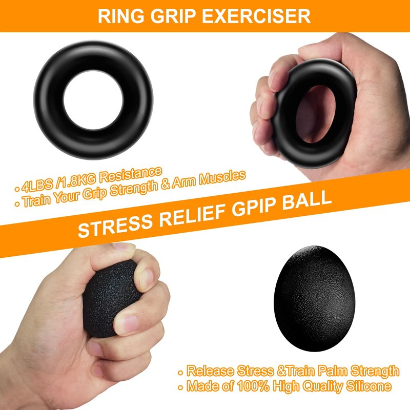 - 【Hand Strengthener Workout Kit 5 Pack】forearm grip workout includes adjustable hand grip strengthener, finger exerciser, finger stretcher resistance band, grip enhancer grip ring and hand therapy ball,A variety of products, a wide range of uses.