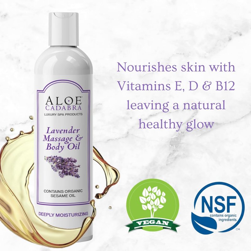 - Aloe Cadabra Massage Oil is free from toxins, additives, or any nasty chemicals. Our lavender massage oil will help moisturize skin while relaxing sore muscles, perfect for your self care routine!