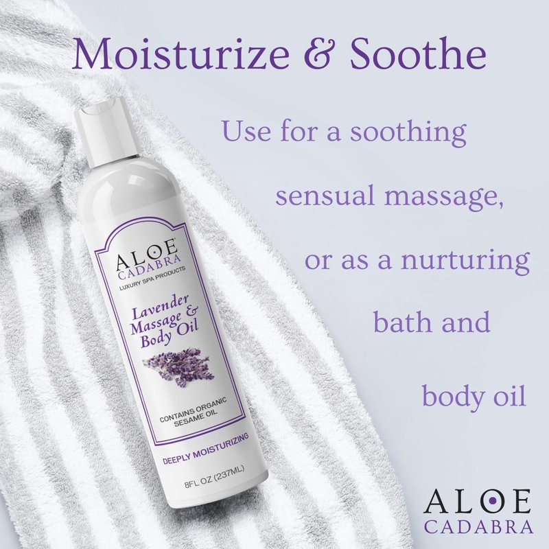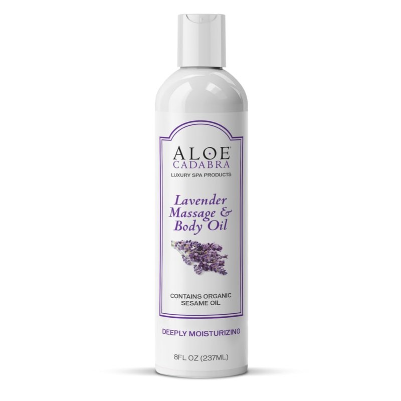 Aloe Cadabra Body Massage Oil for Men, Women, Couples, Relaxing Therapeutic Massage, Aromatherapy, Moisturizing Bath & Body Oil with Lavender Essential Oil (8 Fl Oz)