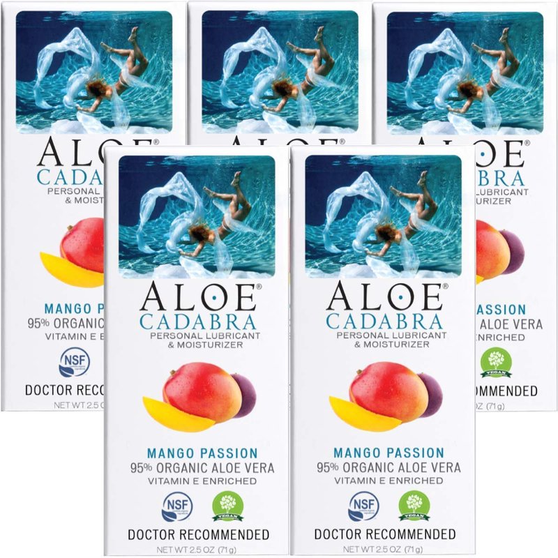 Aloe Cadabra Flavored Personal Lubricant Organic Passion Lube for Women, Men & Couples, Mango Passion 2.5 Ounce (Pack of 5)