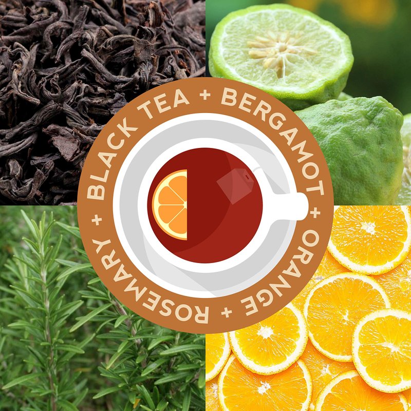 - Bergamot + Black Tea + Orange + Rosemary