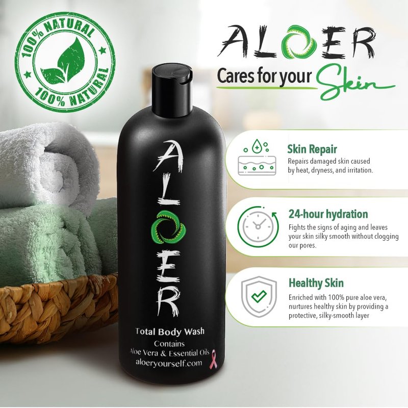 - UNISEX-All ages and skin-types. Perfect for those who want better skin all-natural 100% pure aloe skin nourisher, It protects the skin, leaving it silky smooth. Aloer body wash Soothes eczema, and shaving bumps. Cleans all hair types and beards.