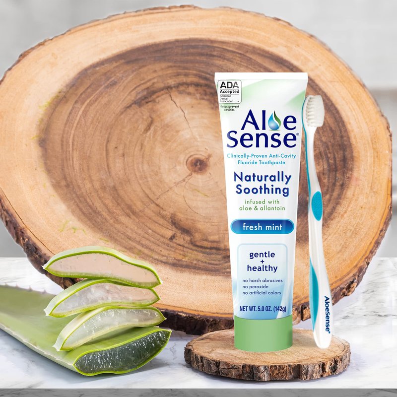 - NATURALLY SOOTHING: AloeSense is a natural toothpaste with flouride that harnesses the power of aloe vera and allantoin, designed to soothe and comfort sensitive teeth and gums. It works to support your overall mouth health and rinses clean, leaving no unpleasant aftertaste after brushing.