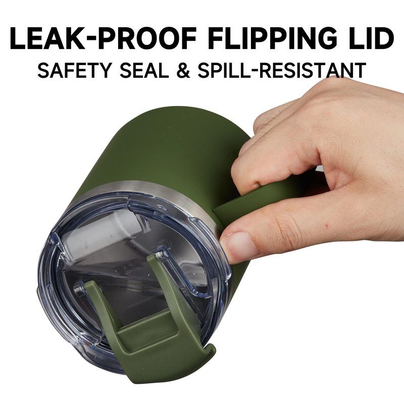 ALOUFEA 12oz Insulated Coffee Mug Cup with Handle, Stainless Steel Travel Coffee Mug with Flip Lid, Double Wall Vacuum Coffee Tumbler, ArmyGreen