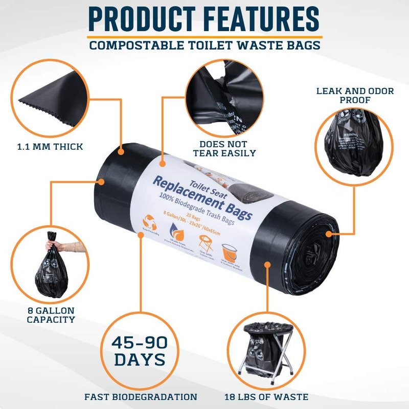 - MULTI-PURPOSE DISPOSABLE BAGS – Although it Focuses on Being a Toilet Replacement Bag for the Alcpour Portable Toilet Seat, It Can Also Act as a Compostable Garbage Bag which is More Eco-Friendly and Can Easily Fit on Your Car's Compartment or Any Storage Area During Long Car Trips, Sudden Beach Nights, and Camping.