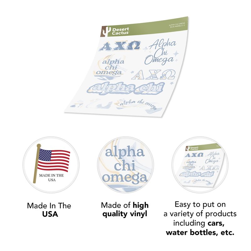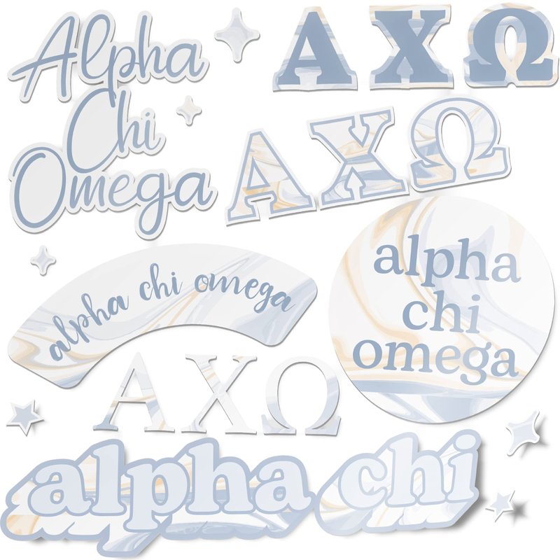 Alpha Chi Omega Sorority Sticker Decal Laptop Water Bottle Car AXO (Marble Sheet)