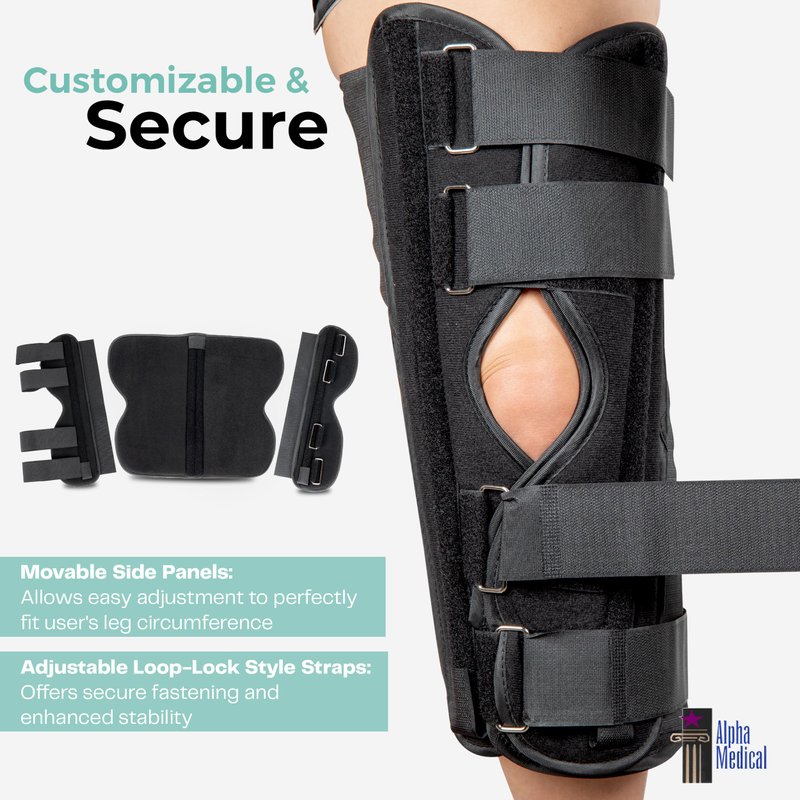 Alpha Medical 22” Long Adjustable Three Panel Orthopedic Knee Immobilizer – Supportive & Adjustable Side Panels – Knee Brace Stabilizer – Knee Immobilization L1830