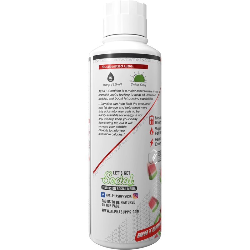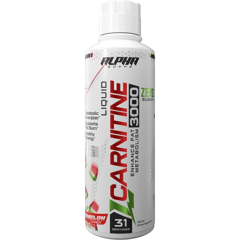 Alpha Supps - L-Carnitine 3000 mg Liquid | Stimulant-Free Amino Acid | 31 Servings (Watermelon Candy)
